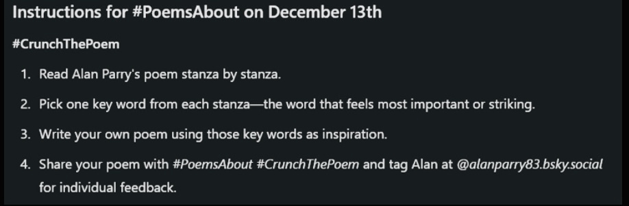 @brokenspinearts.bsky.social Thanks for a great prompt #PoemsAbout #CrunchThePoem @alanparry83.bsky.social